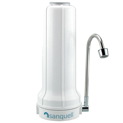 Dieser Auftisch-Trinkwasserfilter zur Aufbereitung von Leitungswasser ist durch seine einfache Art der Montage ein sehr beliebter Wasserfilter. Sein stabiles Kunststoff-Gehäuse ist kratzfest und mit einem Auslaufbogen aus Edelstahl versehen.